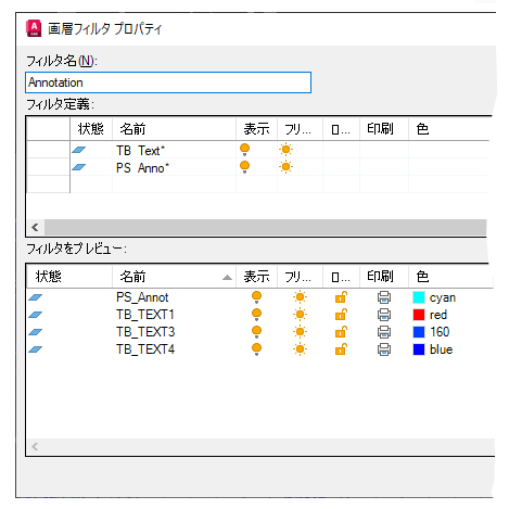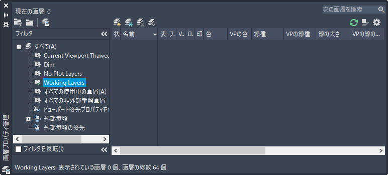 注: フィルタ プロパティに一致する画層が図面に追加されると、自動的にフィルタ リストに追加されます。