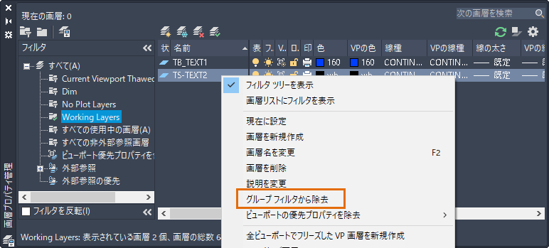 注: この方法を使用して、いつでもグループ フィルタに画層名を追加することができます。