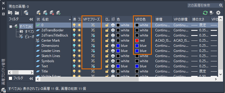 - LAYER[画層管理]コマンドを使用して[画層プロパティ管理]を開きます。 検索