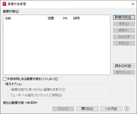 - [画層状態管理]ダイアログ ボックスで、[新規作成]をクリックします。