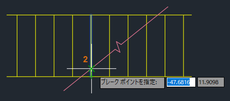 BREAK[部分削除]を使用して 1 点で線分を分割する