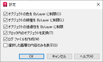 LAYTRANS[画層標準を適用] 現在の図面の画層に、指定した画層標準を適用します。(AutoCAD のみ)