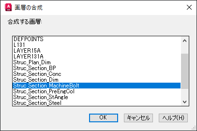 9. [合成先の画層]ダイアログ ボックスで、リストから Struc_Section_MachineBolt を選択し、[OK]をクリックします。