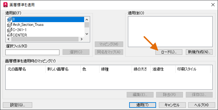 3. [画層標準を適用]ダイアログボックスで、[適用後]領域の[ロード]をクリックします。