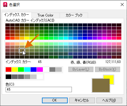 4. [色選択]ダイアログボックスで、色見本 45 を選択し、[OK]をクリックします。