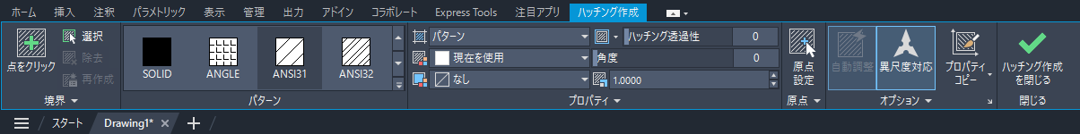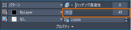 ハッチングを適用または編集するときに、角度、尺度、原点などのプロパティを割り当てることができます。