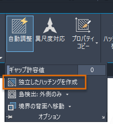 2. [ハッチング エディタ]リボンの[オプション]パネルを展開して、[ハッチングを分離]を選択します。