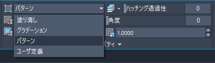 2. [プロパティ]パネル [ハッチングのタイプ]リストで、使用するハッチングのタイプを選択します。この演習では、[パターン]を選択します。