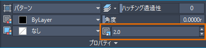 HPSCALE 現在の図面で新しく作成するハッチング パターンの既定の尺度係数を設定します 1.00 保存されません