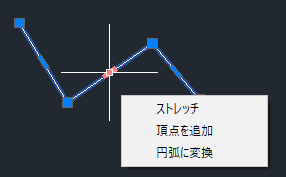 カーソルの動きに従って線分がストレッチされます。このストレッチは、点を選択するまでの一時的な表示です。