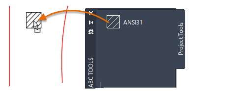 5. マウスの右ボタンを押しながら、そのハッチング オブジェクトをツール パレットにドラッグします。