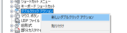 - [カスタマイズ]タブの[ <ファイル名> 内のカスタマイズ]ペインで、[ダブルクリック アクション]ノードを右クリックします。[新しいダブルクリック アクション]を選択します。