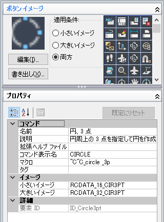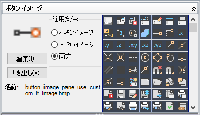 イメージ リストからイメージを選択すると、イメージ名が選択したコマンドの[小さいイメージ]、[大きいイメージ]、または[両方]のプロパティに割り当てられます。