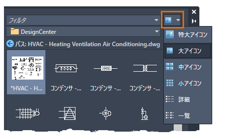 [DesignCenter]フォルダ内の各図面には、関連するブロック定義のセットが含まれています。