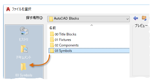 通常、個々の図面ファイルをブロックとして使用するように作成し、類似の図面ファイルと一緒にフォルダに保存します。この方法は、1 つの図面に格納されているブロック定義にアクセスする代わりの方法です。