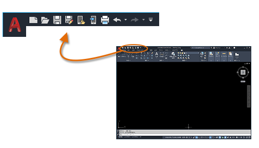 AutoCAD では、アプリケーションの上部に標準的なタブ リボンが表示されます。[ホーム]タブから、このガイドで紹介するコマンドのほとんどにアクセスできます。また、下に示すクイック アクセス ツールバーには、[新規作成]、[開く]、[保存]、[印刷]、[元に戻す]など、頻繁に使用するコマンドが含まれています。
