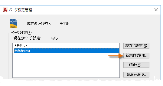 [ページ設定管理]ダイアログ ボックスを開くには、[モデル]タブまたはレイアウト タブを右クリックし、[ページ設定管理]を選択して開きます。PAGESETUP[ページ設定]コマンドでも開くことができます。