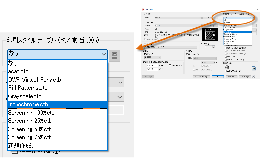 印刷スタイル テーブルは、色の処理に関する情報を提供します。モニタでは適切に表示されている色が、PDF ファイルや印刷に適しているとは限りません。たとえば、図面はカラーで作成しても、モノクロで出力したい場合もあります。ここで、モノクロ出力を指定する方法を説明します。