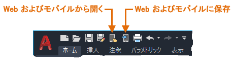 遠隔地で図面にアクセスする必要がある場合は、[Web およびモバイルに保存]および[Web およびモバイルから開く]コマンドを使用してみてください。