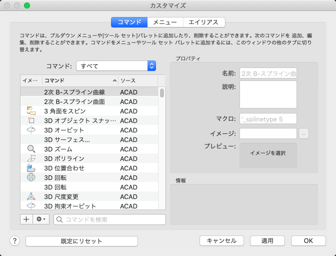 CUI[ユーザ インタフェースをカスタマイズ] (コマンド)
