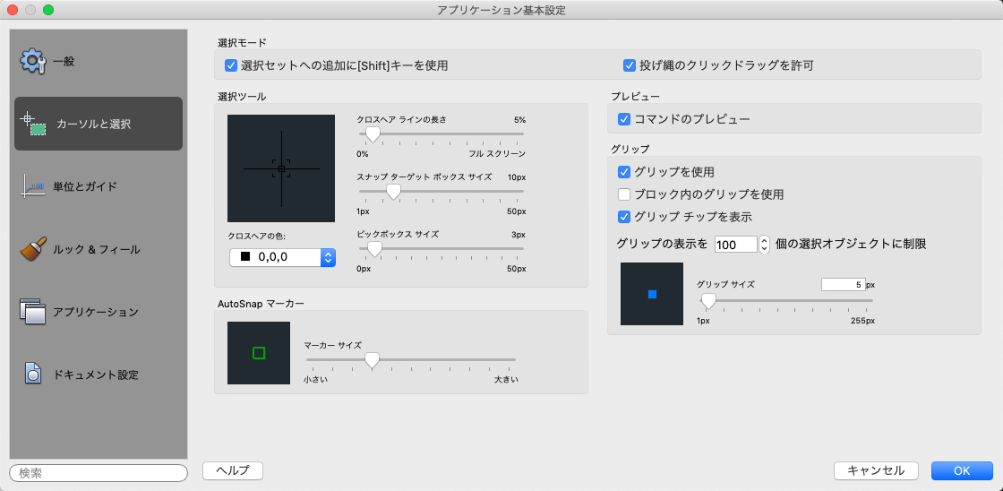 オブジェクトを選択するときに使用するピック ボックスのサイズを、ピクセル単位で設定します。(システム変数 PICKBOX)