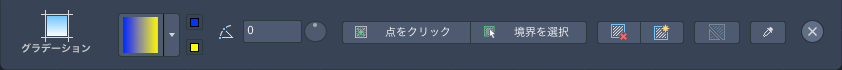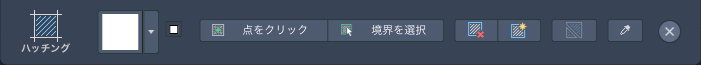 [ハッチング]バイザーは、HATCH[ハッチング]または GRADIENT[グラデーション]コマンドを開始するか、図面内の既存のハッチまたは塗り潰しを選択すると表示されます。