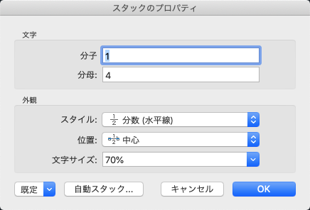 Stacks the selected text with the first number on top of the second number separated by a diagonal line.