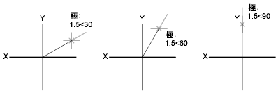 極トラッキングを使用すると、指定した角度にカーソルの移動が制限されます。PolarSnap を使用すると、極角度に沿って指定した距離の増分にカーソルの移動が制限されます。