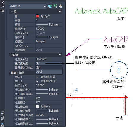 注釈オブジェクトには、寸法、注記、および他の種類の説明用記号や、図面に情報を記入するために一般的に使用されるオブジェクトがあります。
