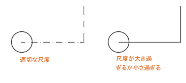 線種尺度は、作図単位ごとの線種パターンの繰り返しのサイズと間隔をコントロールします。線種の表示方法と印刷方法に影響する尺度オプションは多数あります。