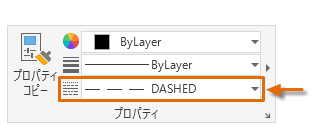 現在の線種の設定により、すべての新しいジオメトリ オブジェクトの既定の外観が定義されます。オブジェクトを選択していない状態では、リボンの[ホーム]タブの[プロパティ]パネルで現在の線種を確認できます。