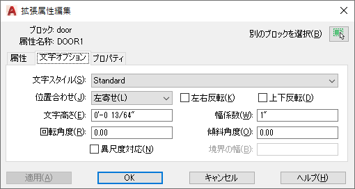 属性文字の文字スタイルを指定します。この文字スタイルの既定値が、このダイアログ ボックスに表示されている文字プロパティに割り当てられます。