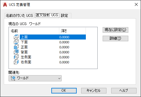 [直交投影 UCS]タブ([UCS 定義管理]ダイアログ ボックス)