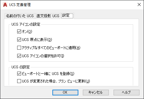 [設定]タブ([UCS 定義管理]ダイアログ ボックス)