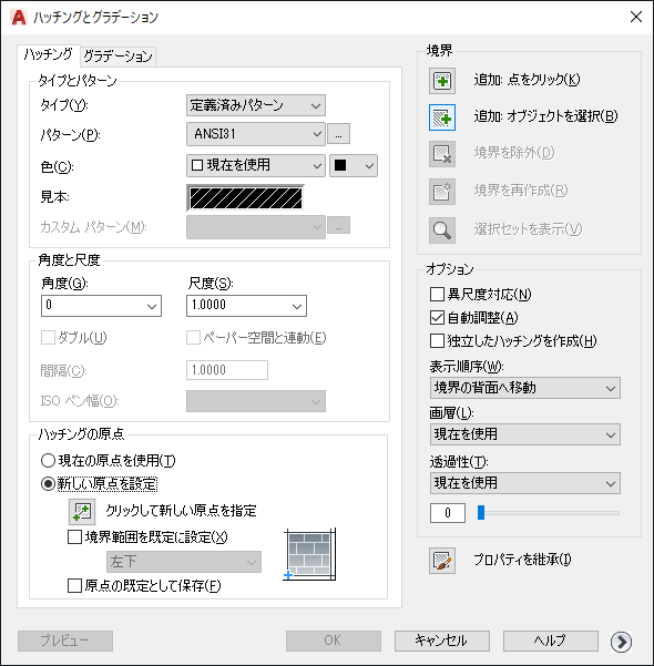 HATCH[ハッチング] (コマンド) 検索: プロンプトで設定のオプションを指定