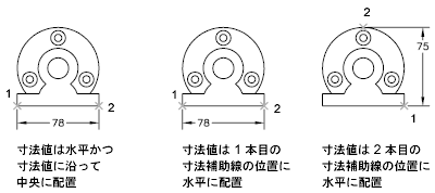 手動で寸法値を配置し、位置合わせと方向を指定することができます。