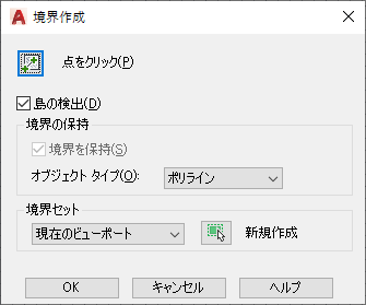 新しい境界オブジェクトのタイプをコントロールします。BOUNDARY コマンドは、境界をリージョンまたはポリライン オブジェクトとして作成します。