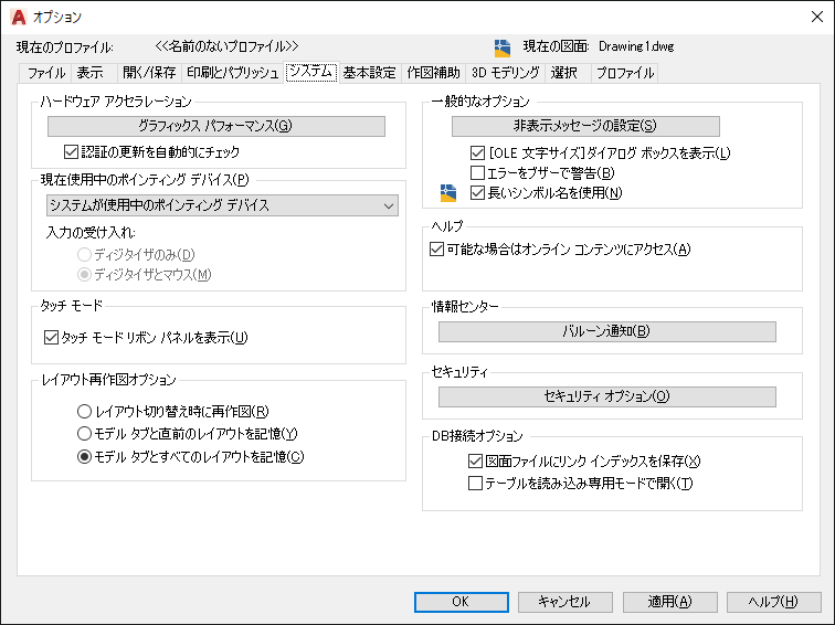 [システム]タブ ([オプション]ダイアログ ボックス)