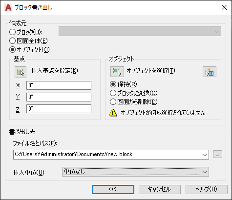 ブロックまたはオブジェクトを保存するファイル名とパスを指定します。