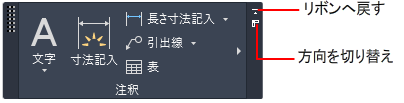 リボンは、図面の作成や修正に必要なすべてのツールのコンパクトなパレットを提供します。次のいずれかの位置に配置できます。