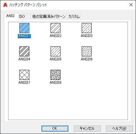 HATCH[ハッチング] (コマンド) 検索: プロンプトで設定のオプションを指定 > [パターン]: