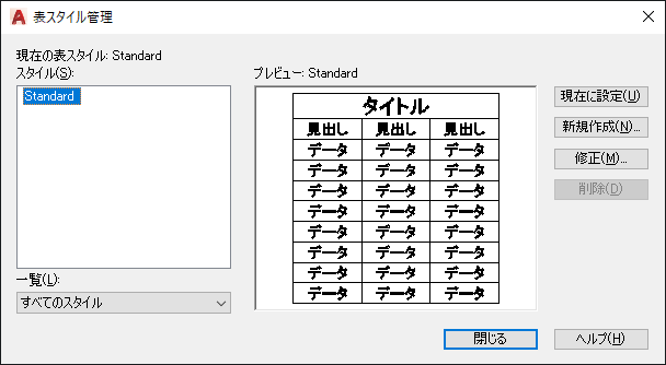 TABLESTYLE[表スタイル管理] (コマンド) 検索