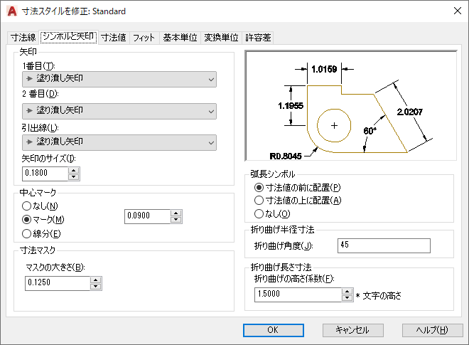 [シンボルと矢印]タブ([寸法スタイル管理])
