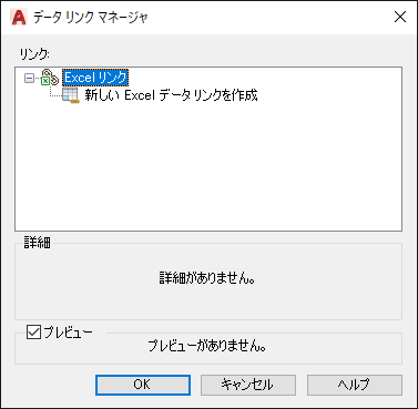 リンクされたデータが図面の表でどのようになるかのプレビューが表示されます。データ リンクを選択していないと、プレビューは表示されません。