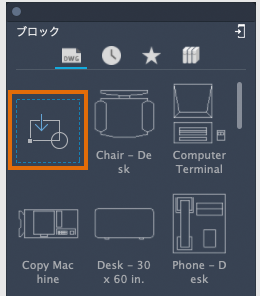 現在の図面、最近使用、お気に入り、またはブロックが保存されているライブラリにアクセスしてそこからブロックを挿入することができます。