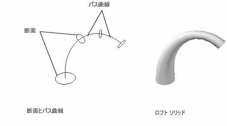 一連の断面を指定することで、3D ソリッドまたは 3D サーフェスを作成します。作成されるソリッドまたはサーフェスの形状は、断面によって定義されます。少なくとも 2 つの断面を指定する必要があります。