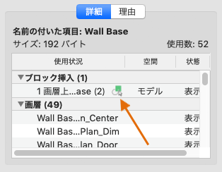 現在の図面内の名前削除できないブロック参照をプレビュー表示して特定することができます。
