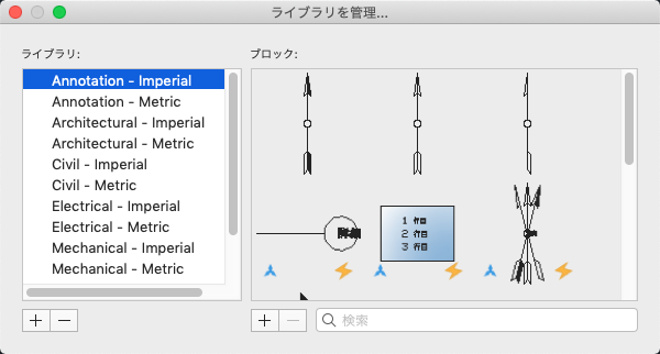 選択したライブラリに含まれるブロックが一覧表示されます。
