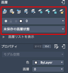 新しく作成されるすべてのオブジェクトは現在の画層に描画されます。現在の画層は、[画層]パレットに示されます。