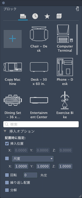 [ブロック]パレットが表示され、現在の図面にブロックや図面を挿入することができます。